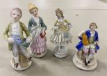 Occupied Japan porcelain Gent, Germany porcelain lady, two bisque porcelain lady and gent, 4 1/2"h. Occupied Japan porcelain Gent, Germany porcelain lady, two bisque porcelain lady and gent, 4 1/2"h.