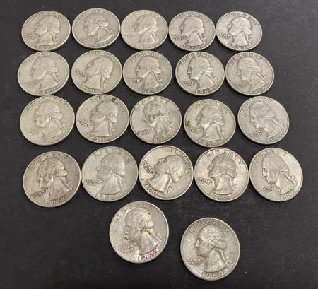 Twenty Two 1960 Silver Quarters, good condition Twenty Two 1960 Silver Quarters, good condition