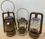 Antique Regal Railroad lantern, marked Pat July 29th 1890/Pat June 30th 1903, good condition. Dietz Railroad lantern, original embossed globe, has crack, Wagon Oil Lantern, good condition, needs cleaning. Antique Regal Railroad lantern, marked Pat July 29th 1890/Pat June 30th 1903, good condition. Dietz Railroad lantern, original embossed globe, has crack, Wagon Oil Lantern, good condition, needs cleaning.