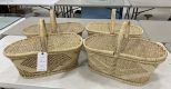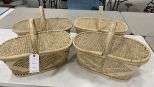 Four Woven Picnic Baskets, double lid, handled, natural finish, good condition, 15"h., 23"w. Four Woven Picnic Baskets, double lid, handled, natural finish, good condition, 15"h., 23"w.