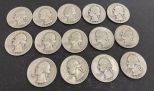 Fourteen 1946 Silver Quarters, average circulated. Fourteen 1946 Silver Quarters, average circulated.