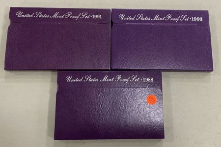 Three United States Proof Sets, 1988, 1991, 1993. Three United States Proof Sets, 1988, 1991, 1993.