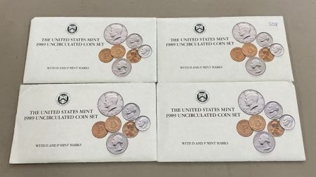 Four DP Uncirculated Coin Sets, 1989. Four DP Uncirculated Coin Sets, 1989.