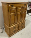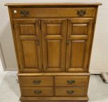Taylor Jamestown Maple Dresser, Doors with inner drawers, four bottom drawers, light wear, 57"h., 41"w., 19"d. Taylor Jamestown Maple Dresser, Doors with inner drawers, four bottom drawers, light wear, 57"h., 41"w., 19"d.