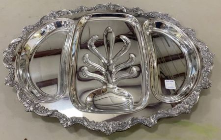 Old English Silver Plate Footed Serving Tray, tree of life, footed, good condition, 22". Old English Silver Plate Footed Serving Tray, tree of life, footed, good condition, 22".