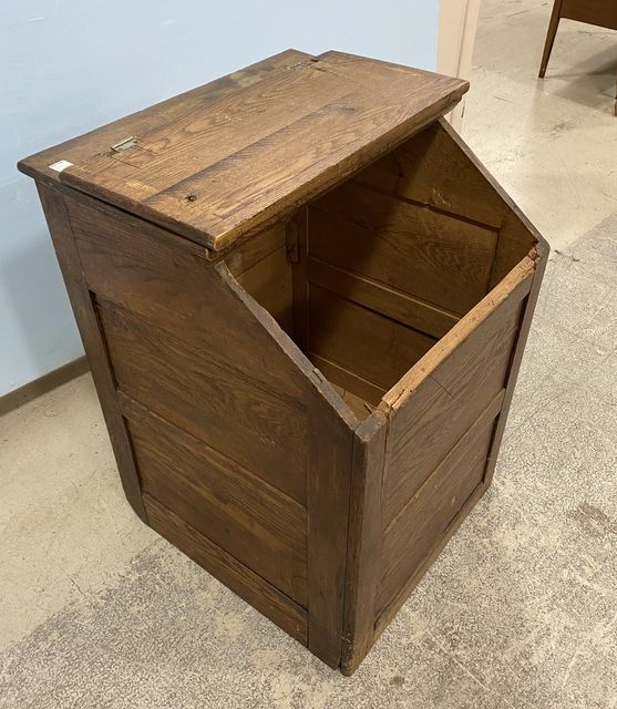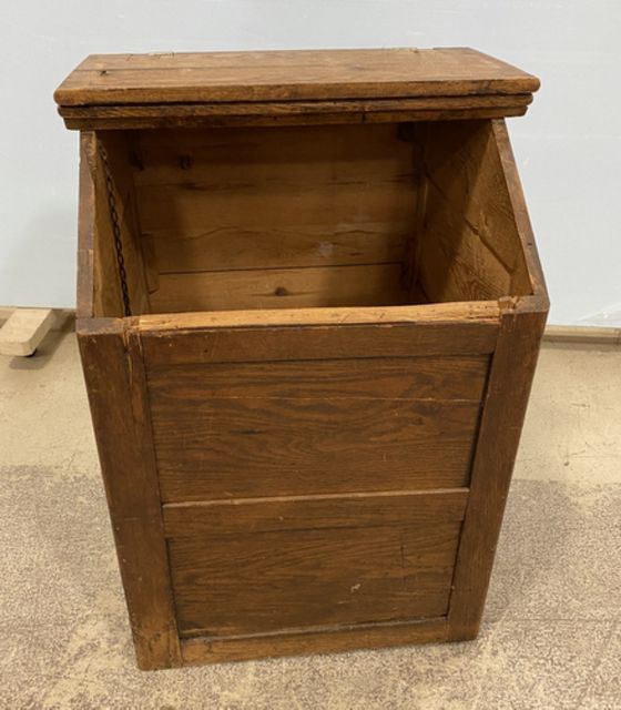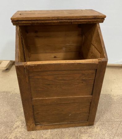 Antique Wood Coffee Bin, Lift top door needs repair, 32"h., 22"w. Antique Wood Coffee Bin, Lift top door needs repair, 32"h., 22"w.
