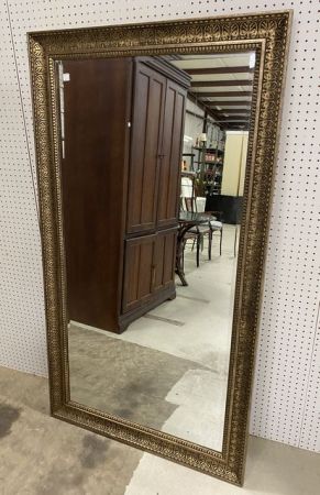 Large Antique Plastic Framed Wall Mirror, beveled mirror, like new, needs hanging cable, 67"h., 37"w. Large Antique Plastic Framed Wall Mirror, beveled mirror, like new, needs hanging cable, 67"h., 37"w.
