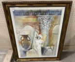 Grecian Style Gold Leaf Print, matted, glassed, frame is 34"h., 28"w. Grecian Style Gold Leaf Print, matted, glassed, frame is 34"h., 28"w.