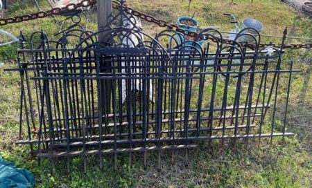 6 Antique Iron Fence Panels, some 6 foot, and smaller sections. 6 Antique Iron Fence Panels, some 6 foot, and smaller sections.