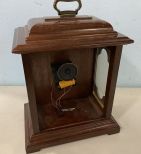 Bulova Battery Operated Carriage Clock, cherry case, missing back piece, 13"h., 10"w. Bulova Battery Operated Carriage Clock, cherry case, missing back piece, 13"h., 10"w.