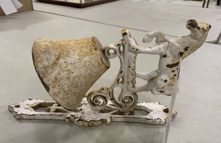 Vintage Cast Iron Horse Dinner Bell, bracket mount, 12"h., aged condition. Vintage Cast Iron Horse Dinner Bell, bracket mount, 12"h., aged condition.