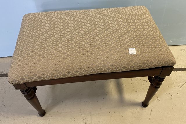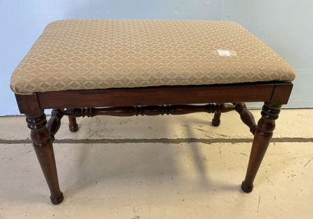 Mahogany vanity stool, vintage, upholstered seat, 16"h., 25"w. Mahogany vanity stool, vintage, upholstered seat, 16"h., 25"w.