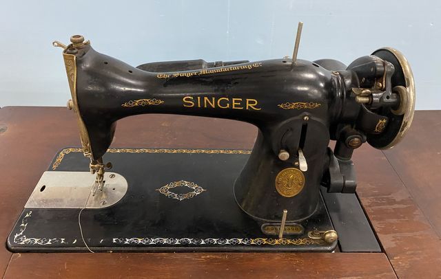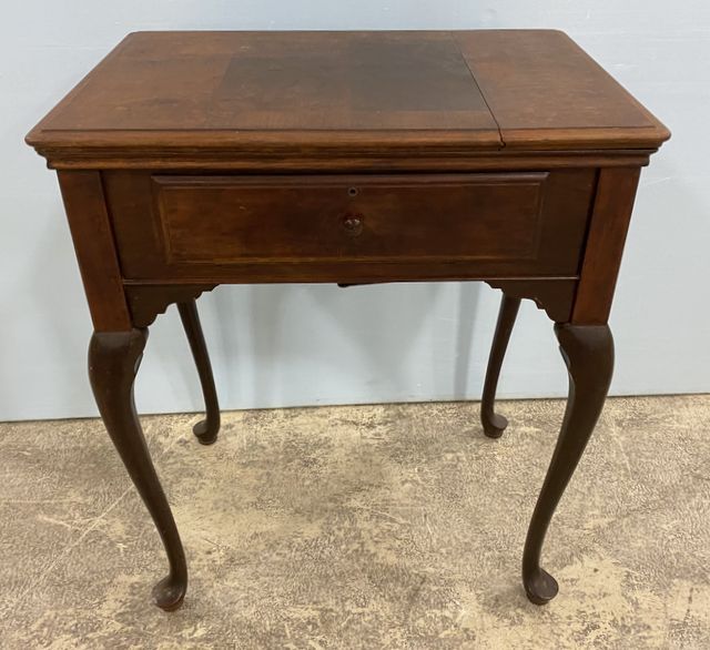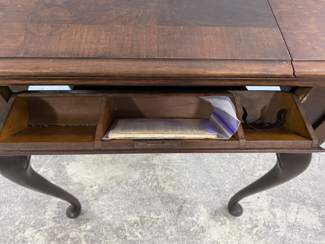728 Mahogany Queen Anne Sewing Cabinet with Singer Sewing Machine