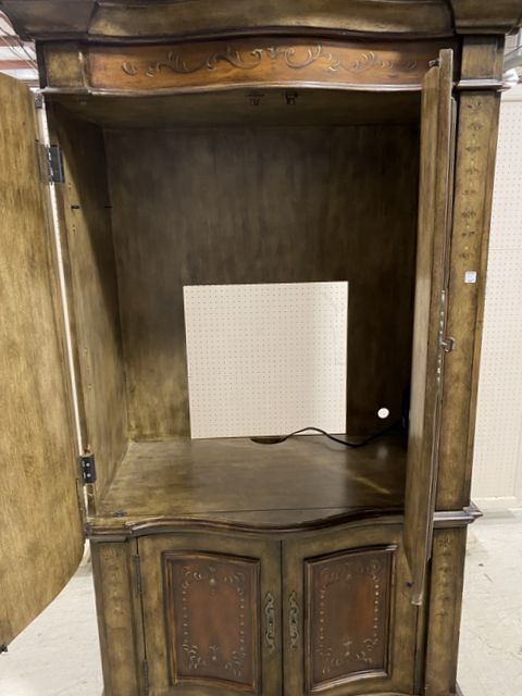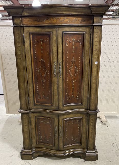 Antique Reproduction Cherry Entertainment Center, four door, has some nicks on finish, one piece, 79"h., 40"w., 22"d. Antique Reproduction Cherry Entertainment Center, four door, has some nicks on finish, one piece, 79"h., 40"w., 22"d.