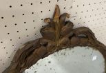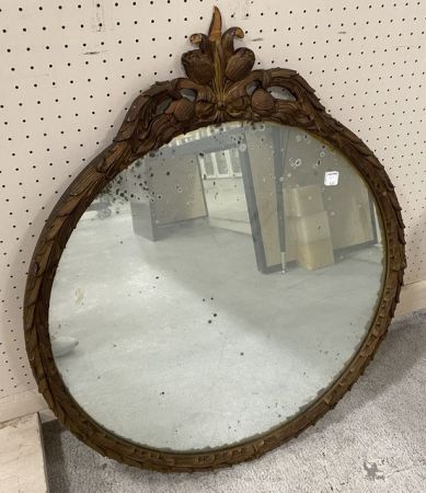 Antique Pressed Wood Round Wall Mirror, crest has some damage, 36"h. Antique Pressed Wood Round Wall Mirror, crest has some damage, 36"h.