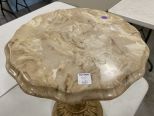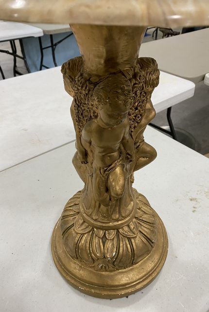 Gold Gilt Composite Pedestal Table, marble round top, 18"h., 14"dia. Gold Gilt Composite Pedestal Table, marble round top, 18"h., 14"dia.