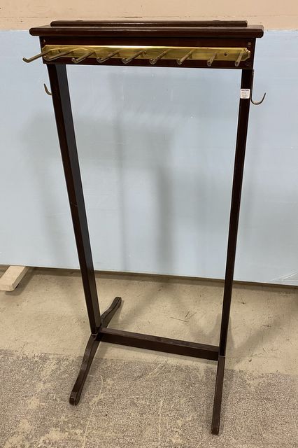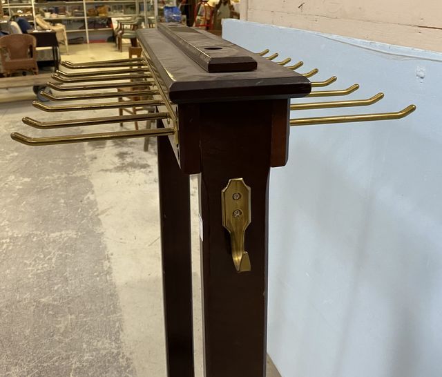 Cherry Tie Display Rack, brass hooks, one bottom side is missing bolts, 54"h. Cherry Tie Display Rack, brass hooks, one bottom side is missing bolts, 54"h.