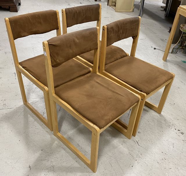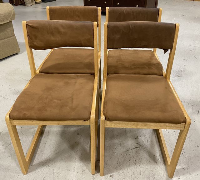 Four Contemporary Side Chairs, oak finish, kit chairs, upholstered cushions, needs some work, 31"h. Four Contemporary Side Chairs, oak finish, kit chairs, upholstered cushions, needs some work, 31"h.