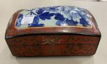 Chinese Wood Box with Porcelain Inlaid Top, 7"w. Chinese Wood Box with Porcelain Inlaid Top, 7"w.