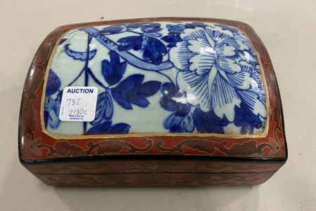 782 Chinese Wood Box with Porcelain Inlaid Top