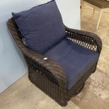 Resin Wicker Patio Arm Chair, Purple cushions, swivel base. Resin Wicker Patio Arm Chair, Purple cushions, swivel base.