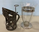 797 Metal Wine Holder and Silver Plate Glass Flower Vase