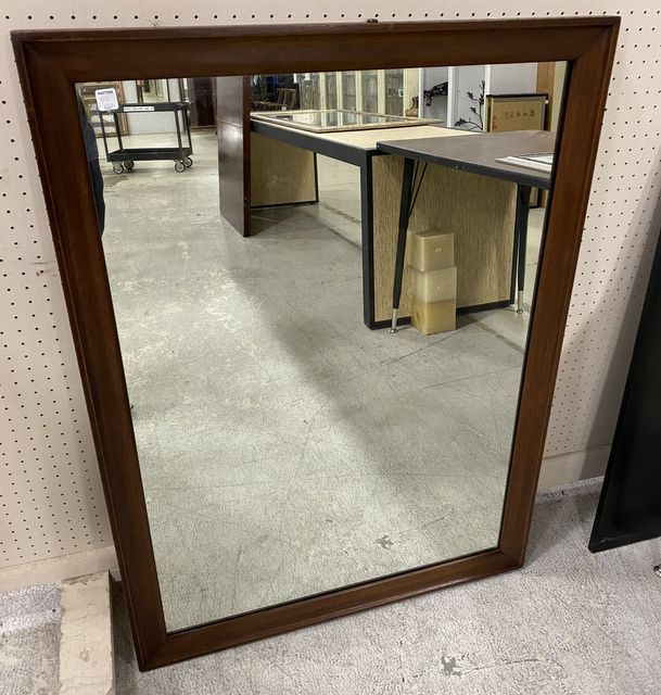 Mahogany Dresser Mirror, mahogany frame, has screw slots for dresser supports, 34"h., 46"w. Mahogany Dresser Mirror, mahogany frame, has screw slots for dresser supports, 34"h., 46"w.