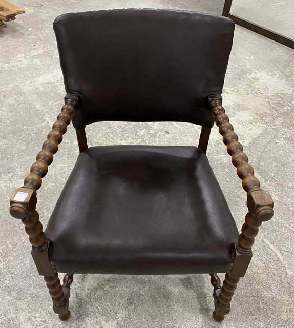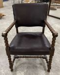 French Modern Neoclassical Arm Chair, black vinyl, stacked ball design. French Modern Neoclassical Arm Chair, black vinyl, stacked ball design.