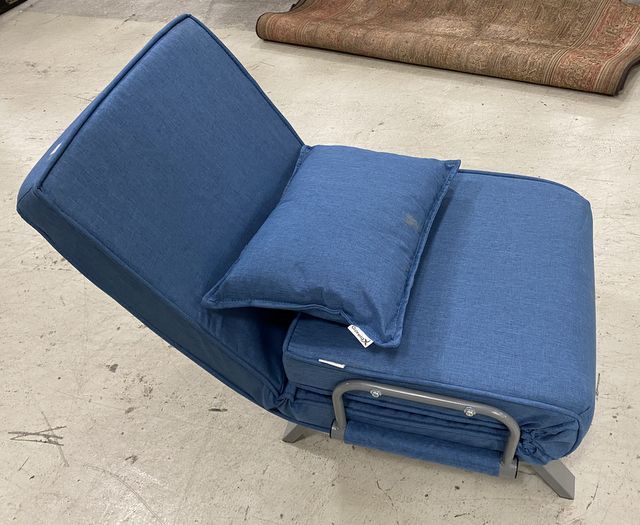 Gorela Fold Out Lounger Chair, with pillow, blue, adjustable head rest. Gorela Fold Out Lounger Chair, with pillow, blue, adjustable head rest.