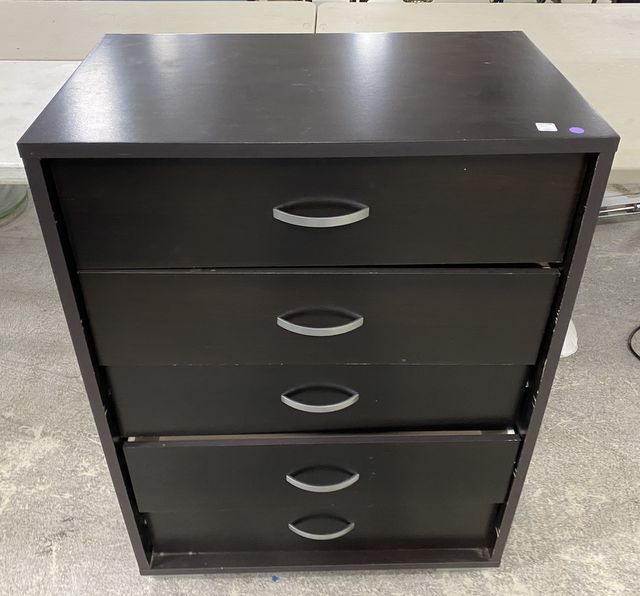 Black Finish Pressed Wood Chest, five drawers, needs work, 42"h., 32"w., 19"d. Black Finish Pressed Wood Chest, five drawers, needs work, 42"h., 32"w., 19"d.
