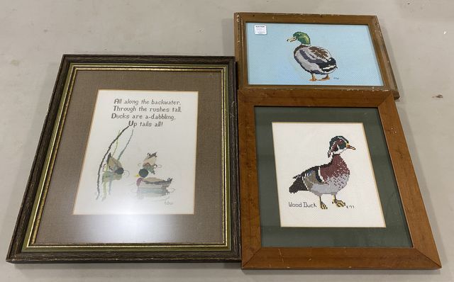 900 Three Needle Point Framed Ducks