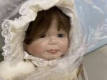Vintage 3 Face Porcelain Doll, head turns, sleeping, happy, crying, Fettman Bros, dress, slip and receiving blanket, 19". Vintage 3 Face Porcelain Doll, head turns, sleeping, happy, crying, Fettman Bros, dress, slip and receiving blanket, 19".
