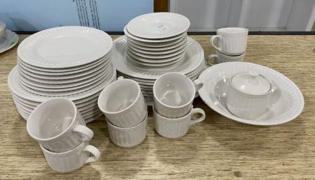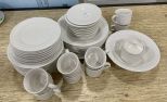 Monarch White Dinnerware Set, 41 pieces, plates, charger, bowls, cups. Monarch White Dinnerware Set, 41 pieces, plates, charger, bowls, cups.