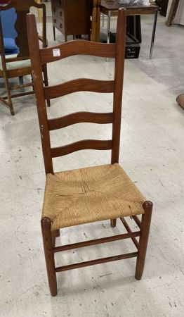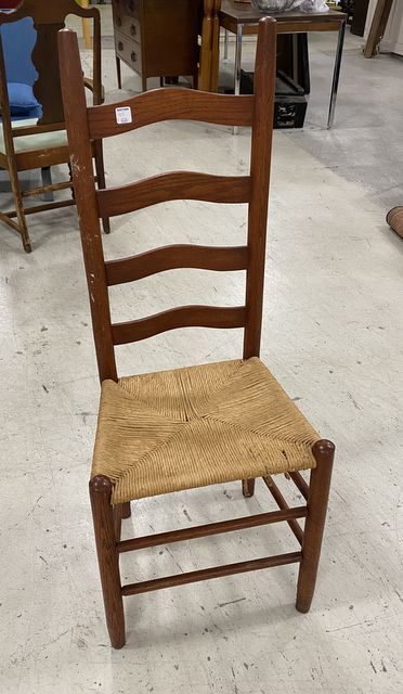 Oak Primitive Slat Back Side Chair, woven seat. Oak Primitive Slat Back Side Chair, woven seat.
