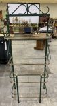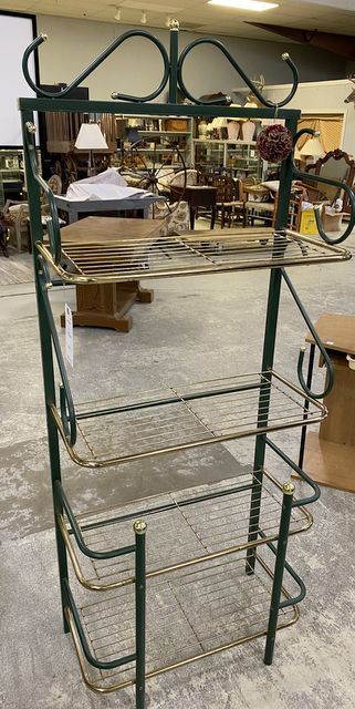 Black and Brass Baker's Rack, four shelf, 67"h., 29"w. Black and Brass Baker's Rack, four shelf, 67"h., 29"w.