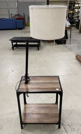 Industrial Style Lamp Table, two tier, lamp rod needs tightening, 55"h. Industrial Style Lamp Table, two tier, lamp rod needs tightening, 55"h.