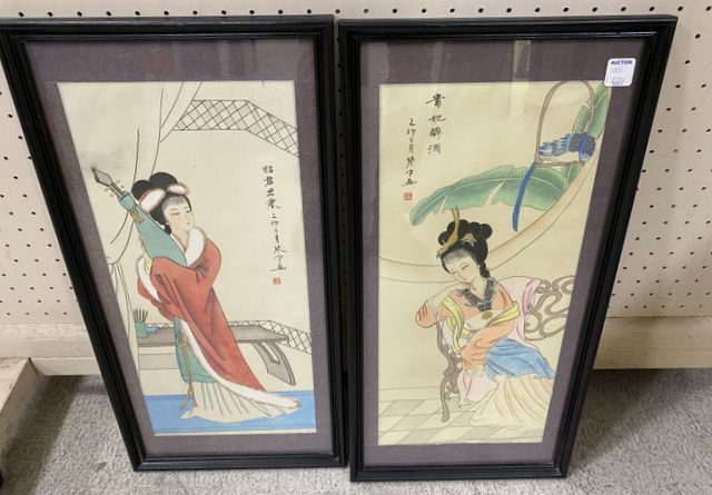 Two Asian Lady Prints, matted, signed, framed, 23"h., 12"w. Two Asian Lady Prints, matted, signed, framed, 23"h., 12"w.