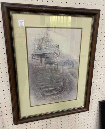 Crib House Print, matted, framed, 25"h., 19"w. Crib House Print, matted, framed, 25"h., 19"w.