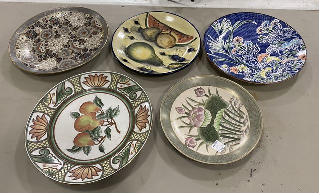 Group of Porcelain Hand Painted Chargers, Oriental style, 5 total, 12"dia. Group of Porcelain Hand Painted Chargers, Oriental style, 5 total, 12"dia.