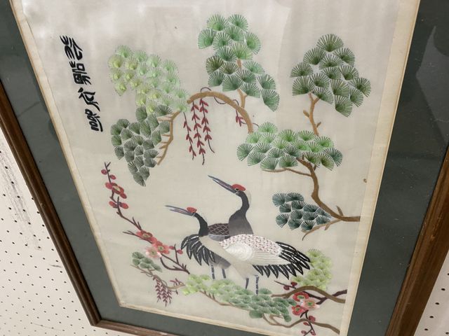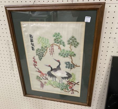 Oriental Crane Switched Silk Tapestry, matted, framed, 26"h., 20"w. Oriental Crane Switched Silk Tapestry, matted, framed, 26"h., 20"w.