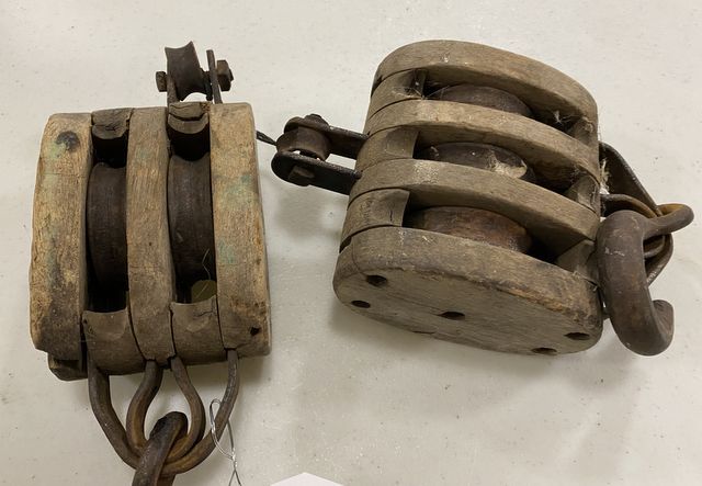 Antique Primitive Pullies, two, working condition. Antique Primitive Pullies, two, working condition.