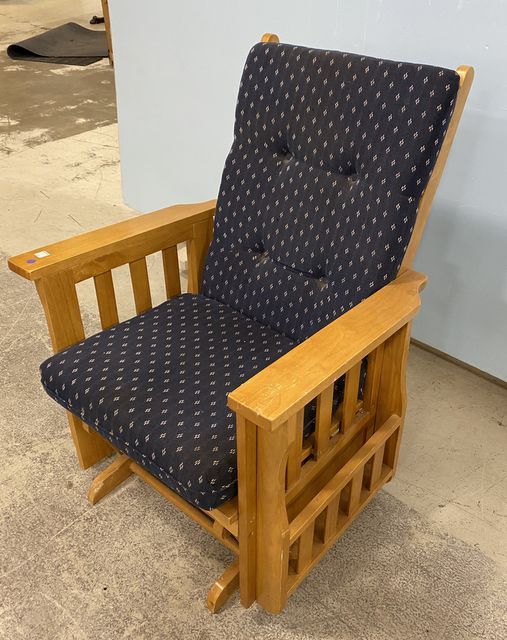 Oak Finish Glider Rocker, Mission style, some wear. Oak Finish Glider Rocker, Mission style, some wear.