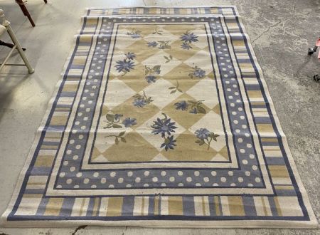 Machine Made Indoor/Outdoor Rug, teal, floral, needs cleaning, 5'3 x 7'3. Machine Made Indoor/Outdoor Rug, teal, floral, needs cleaning, 5'3 x 7'3.