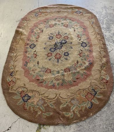 Jokol Hand Hooked Oval Rug, vintage, needs cleaing, 5'10 x 4'. Jokol Hand Hooked Oval Rug, vintage, needs cleaing, 5'10 x 4'.