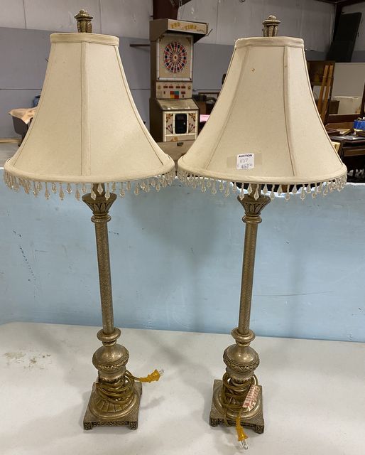 Pair of Gold Buffet Lamps, metal frame, with shades, 31"h. Pair of Gold Buffet Lamps, metal frame, with shades, 31"h.