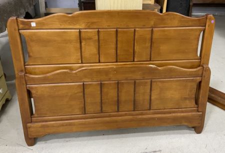 Cherry Full Size bed, with wood rails, one hook needs repair. Cherry Full Size bed, with wood rails, one hook needs repair.