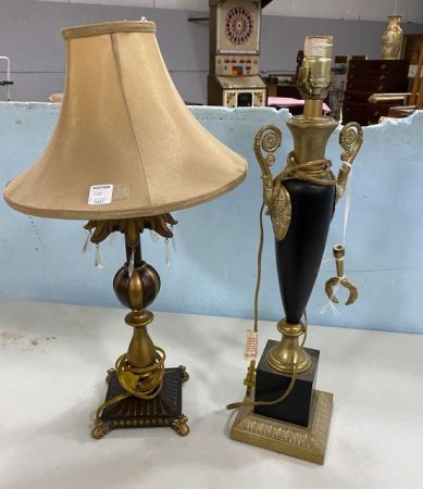 Two Decorative Table Lamps, Urn style with no shade and candle stick with prisms, has shade, 23"h. Two Decorative Table Lamps, Urn style with no shade and candle stick with prisms, has shade, 23"h.