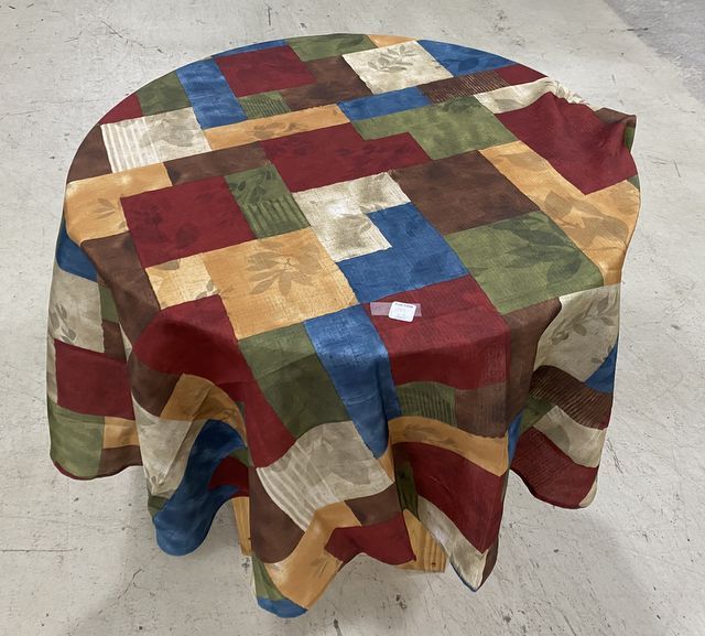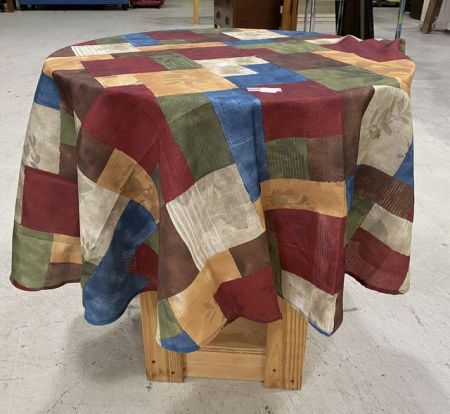 Hand Made Wood Lamp Round Table, fabric cover, 30"h., 29"dia. Hand Made Wood Lamp Round Table, fabric cover, 30"h., 29"dia.