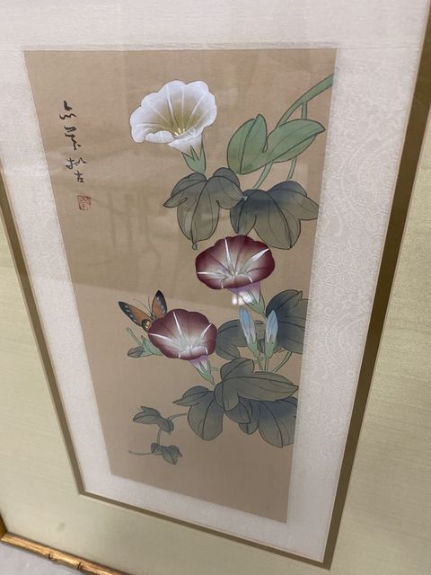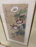 Oriental Flower Framed Print, signed, bamboo gold gilt framed, matted, glassed, 27"h., 19"w. Oriental Flower Framed Print, signed, bamboo gold gilt framed, matted, glassed, 27"h., 19"w.