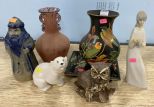 Pottery Statue, Art Glass vase, ceramic bird vase and tray, polar bear, ceramic owl, porcelain lady figurine. Pottery Statue, Art Glass vase, ceramic bird vase and tray, polar bear, ceramic owl, porcelain lady figurine.